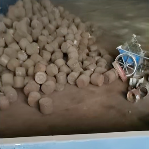 滿是鐵銹的廢鋼渣送入破碎機(jī),瞬間褪去舊貌,煥顏一新。